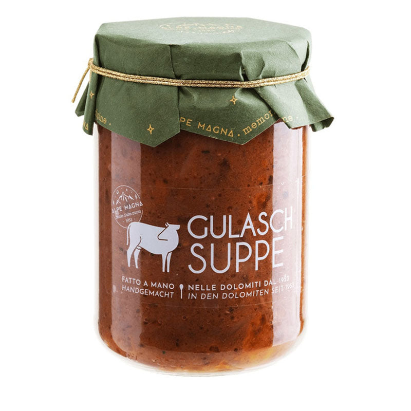 Il formato da 360g è consigliato per una persona, per gustare un buon piatto tradizionale alpino, a base di Gulaschsuppe realizzato secondo le antiche ricette del cuore delle Dolomiti, in Trentino.