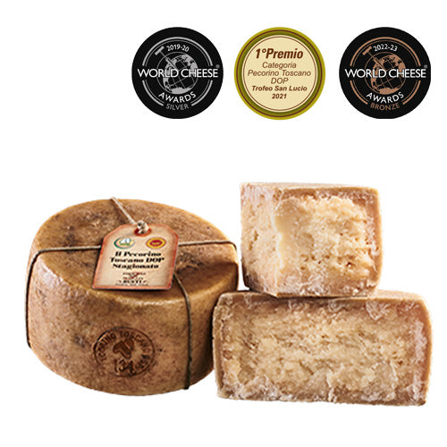 Un prodotto d'eccellenza apprezzato in tutto il mondo che conserva una tradizione antichissima; un'elevata qualità delle materie prime sapientemente lavorate dalle mani esperte dei nostri casari toscani che si tramandano, di generazione in generazione, la ricetta originale. Realizzato esclusivamente con latte di pecora proveniente dai pascoli della Val di Chiana, matura per almeno 120 giorni su assi di legno di abete ad una temperatura fra i 5°C e i 12°C.