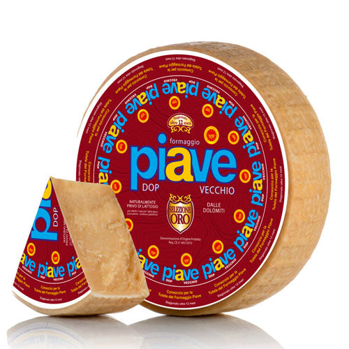 Il Piave Selezione Oro DOP è un formaggio italiano di eccellenza, rinomato per il suo sapore distintivo e la sua qualità superiore. Questo formaggio a pasta dura, prodotto esclusivamente nella provincia di Belluno, nel cuore delle Dolomiti, è realizzato con latte vaccino intero, raccolto solo nelle zone circostanti. Grazie alla sua stagionatura di 12 mesi, il Piave Selezione Oro DOP si distingue per la sua consistenza compatta e friabile, che nasconde al suo interno una sorprendente cremosità.