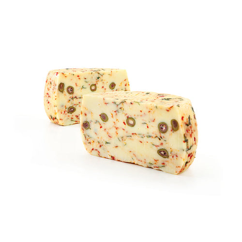 Deliziosa variante che unisce la morbidezza avvolgente della caciotta all'audace vivacità di un tocco piccante. Presenta una consistenza cremosa e compatta, che si fonde armoniosamente con l'intenso aroma delle olive e l'aggiunta di peperoncino che ne accentua la complessità gustativa.